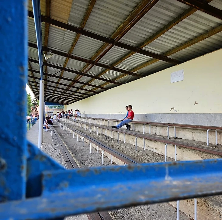 Хоть местный стадиончик и старенький, а трибунка и табло ржавые,, но там явно живет душа. Входной билет стоит 4,00 евро.