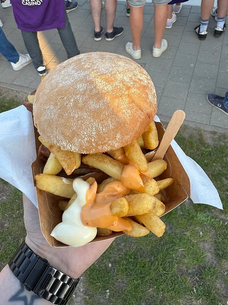 Жареная колбаса с хлебом и горчицей – 80,00 крон (~292 рубля).