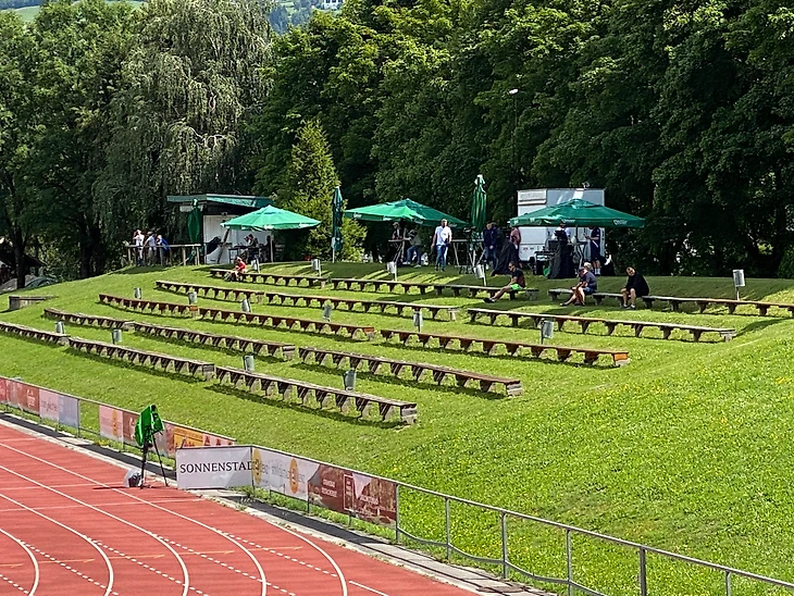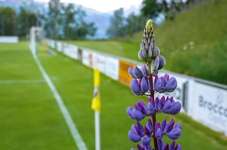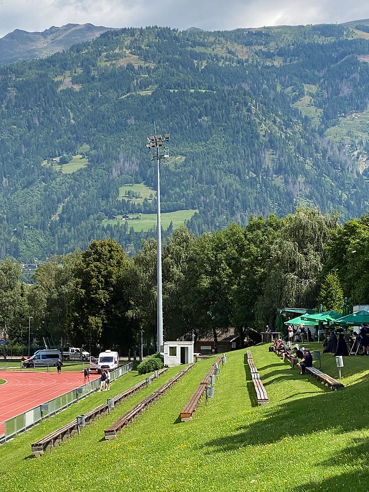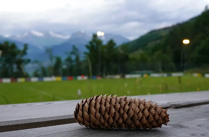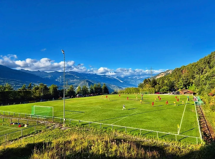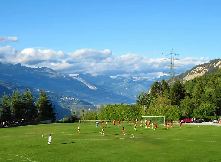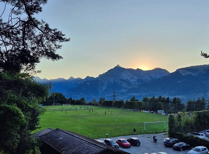 А вот летом здесь на «Стад де Гранжет» можно посмотреть футбик с потрясными видами на Бернские и Валезанские Альпы.