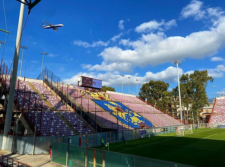 Местный стадион «Оресте Гранилло» находится всего лишь в 15 километрах от аэропорта Реджо-ди-Калабрия Тито Меннити. И когда вы прилетаете в этот чудесный город, то первым, что вы отчетливо увидите с высоты полета — это его!