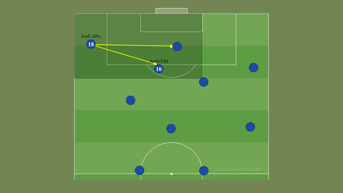 Ещё одной характерной чертой изменений роли Альбы является снижение эпизодов с его участием в завершающей фазе. Периодически Жорди подключался в атаку в полуфланге, но сравнить это с его умением поддержать атаку по краю нельзя.