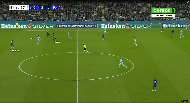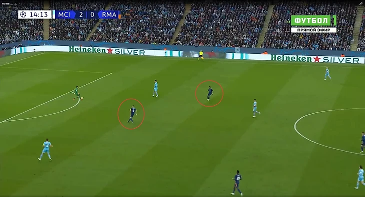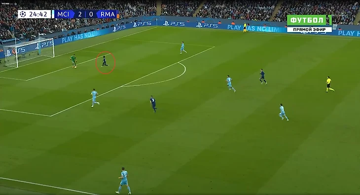 Учитывая возраст капитана (37 лет) и не самую привычную для себя позицию (справа в защите), его зона становилась потенциально слабым местом «горожан». Фактор Винисиуса, действующего на том же фланге, только усугублял ситуацию.