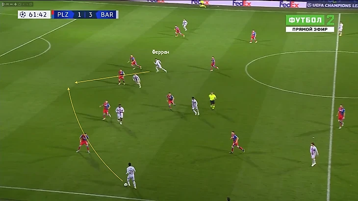 Уже через несколько секунд Ферран совершал рывок под передачу Бальде. Эпизод закончился опасным моментом у ворот «Виктории». Открывания на скорости - приём, который регулярно использует Торрес. Если соперник поднимает линию защиты и даёт свободное пространство за спинами игроков обороны, то данный навык оказывается эффективным.