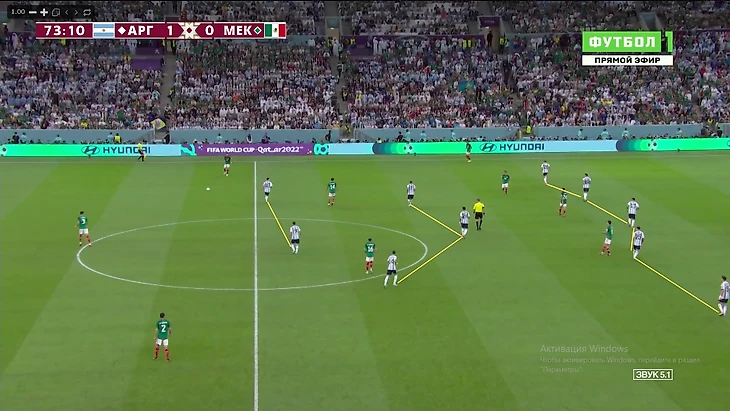 Во второй половине встречи команда Скалони стала начинать атаки с тройкой сзади, что позволяло подниматься фланговым игрокам и создавать дополнительные варианты впереди.