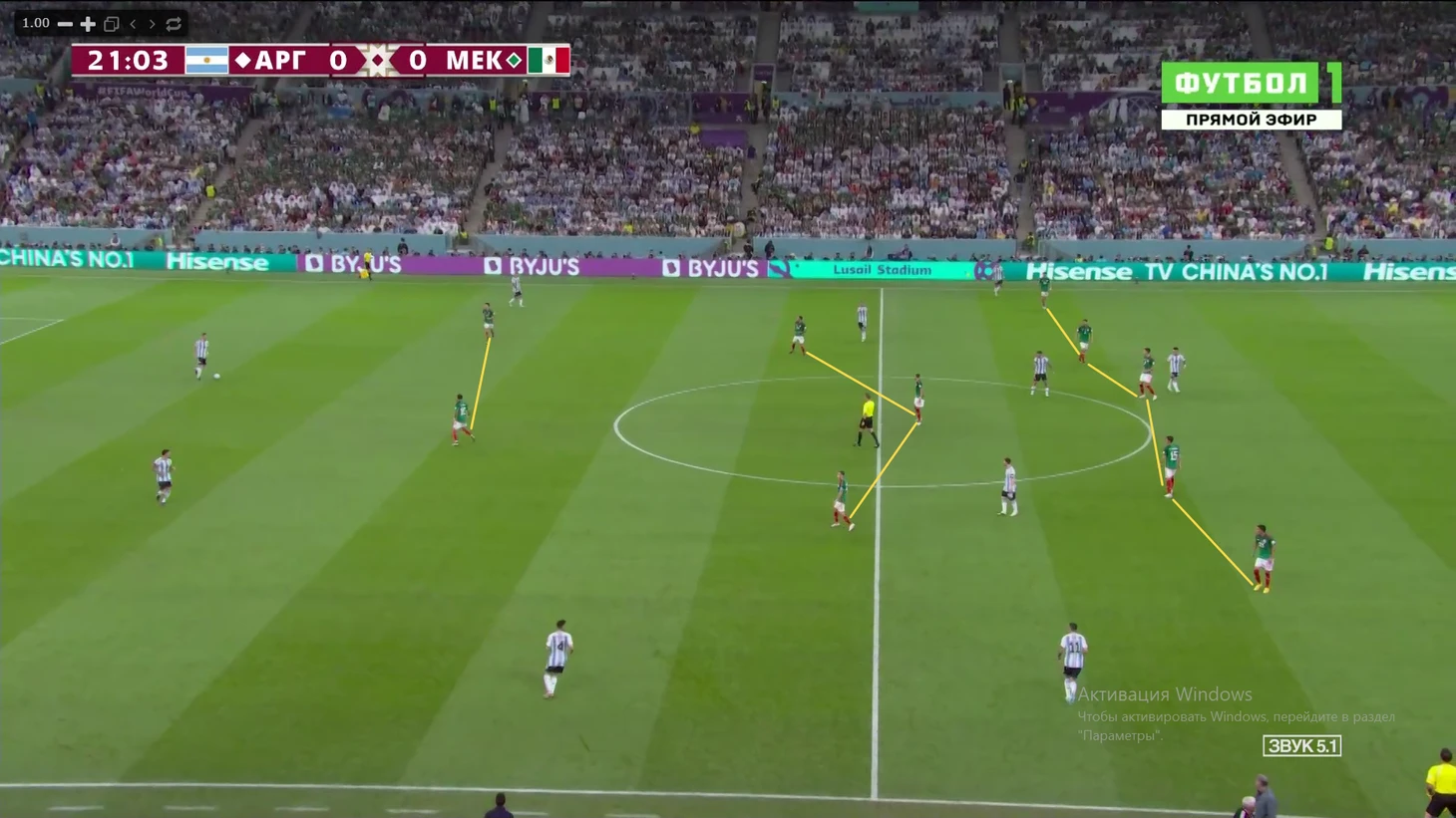 Мексиканцы перешли на привычную четвёрку защитников, а аргентинцы отдали инициативу и заканчивали игру по схеме 5-3-2. Команда Скалони довела матч до победы. В концовке ещё был гол Энцо Фернандеса, но он никак не повлиял на ход встречи.