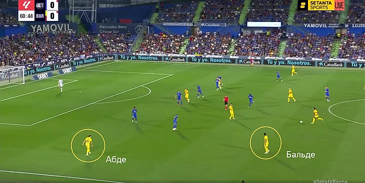 Против насыщенной обороны «Хетафе» у «Барселоны» мало получалось создавать за счёт комбинаций. Альтернативным источником угрозы были индивидуальные действия Рафиньи, вносящие хаос в структуру соперника. Бразилец способен на дриблинге пройти несколько соперников и обострить. После удаления Рафиньи такого игрока не осталось, поэтому Хави выпустил Абде.