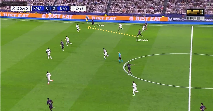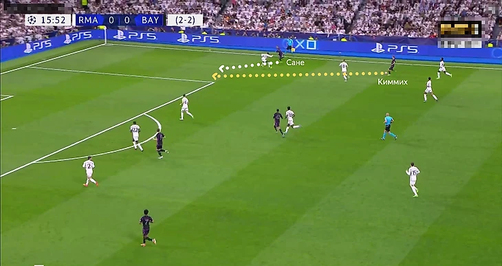 Весь матч игра проходила по достаточно четкому рисунку, где инициативой владеет команда Анчелотти. Но в концовке Тухель стал слишком сильно прижимать команду к своим воротам: вместо Сане появился Ким Мин Чжэ.