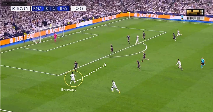Первый гол «Реала» тоже пришел после смещения в центр и удара Винисиуса.