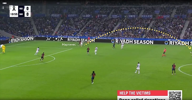 Центр грамотно перекрывался футболистами «Реал Сосьедада», что вынуждало активнее задействовать фланги. Здесь возникла проблема с наполнением состава. Встречу пропускал основной Ламин Ямаль (пропустит 2-3 недели из-за травмы голеностопа). По цепочке это привело к изменениям.