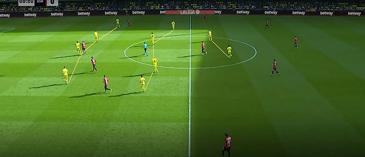 При этом без мяча и «Вильярреал», и другие команды используют другие более привычные схемы. Например, переходят на средний блок 4-4-2.