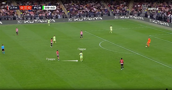 Зачастую Педри опускался на одну линию с Касадо для помощи с продвижениям в начальной стадии атаки. В таких случаях Прадос следовал за ним до конца. Иньяки Уильямс также располагался выше левого вингера Беренгера и ориентировался на левого центрального защитника «Барселоны» (Иньиго Мартинеса).