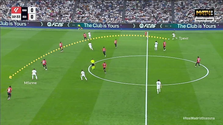 В целом у команды Хаби Алонсо есть все, чтобы сделать этот инструмент эффективным оружием по созданию моментов. Есть игроки, которые способны отдавать подобные передачи (Трент, Милитао, Хейсен). Есть те, кто способен открываться за спину защитникам соперника (Винисиус, Мбаппе).