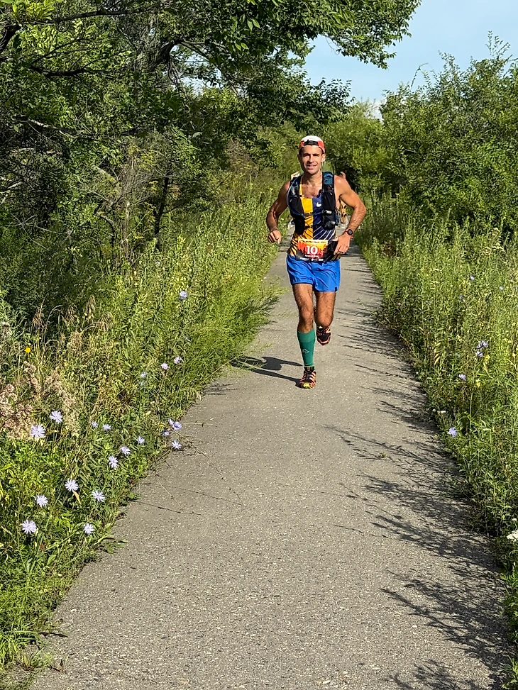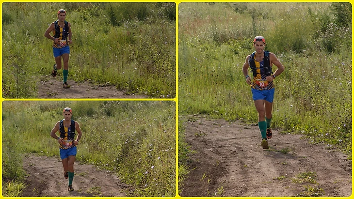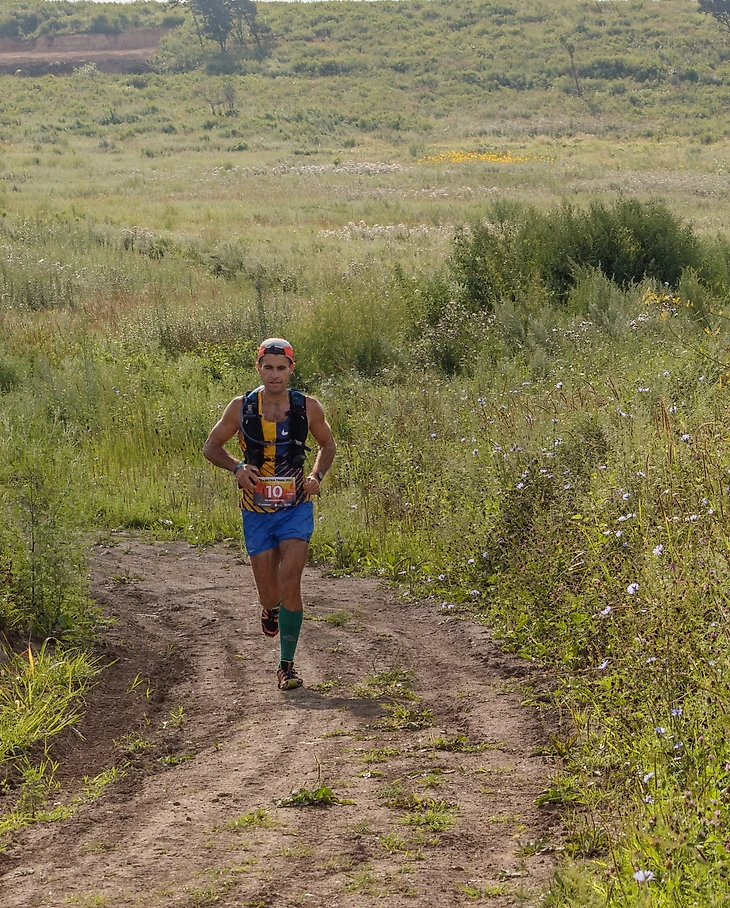 Замечаю, что у меня «разгерметизировался» гидратор. Почувствовал пролившуюся жидкость по спине. Совершил ошибку, после заправки не вытравил давление, и сверху начало «давить» излишки. Тем временем полевая, ровная грунтовая дорога, со всех сторон живописные и стратегические виды на город, окрестности. Отрываюсь от напарника. Организм «вкатился», вхожу в состояние «потока». Смена направления движения, трава становится все выше, эффект освежающего душа из росы все больше, дорога скрывается под кущью растительности, где с одной стороны культурная соя, или что-то подобное, а с другой дикая разноцветная трава. Второй раз немного отклоняюсь от траектории направления разметки. Решаю не возвращаться на траекторию назад, а просто сместить направление, но встречаю упорное сопротивление стеблей растений, обвивающих ноги, и настойчиво рекомендующих вернуться на пару десятков метров назад и «начать заново».