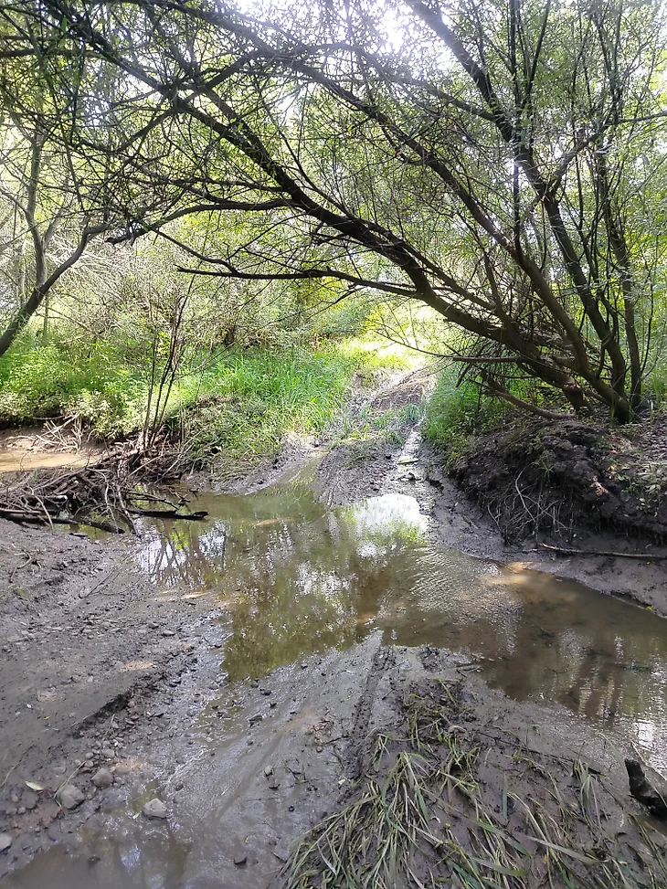 Настрой от смены обстановки повышается. Лужи становятся шире, приходится преодолевать их широкой траекторией. В этом месте также располагается известный прошлой гонкой «брод», с грязевыми ваннами.
