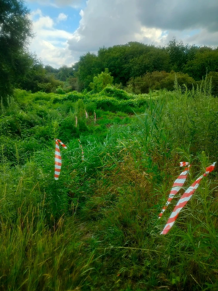Поворот, бег вдоль озера с уникальным названием «девятка». Здесь уже начинается настоящий «плоский» трейл. Бег сквозь утреннюю мокрую траву, размеры которой варьируются, иногда по пояс и выше. Снова поворот, вниз в углубление, где трава, кусты ивы выше головы, и утренняя роса, которая обдает свежестью словно утренний душ. Выход под железнодорожные туннели, согнувшись в три погибели бег-ходьба по одному из них, перед ними густые тропические заросли ивняка и рогоза, одновременно с этим преодоление небольшой канавы.