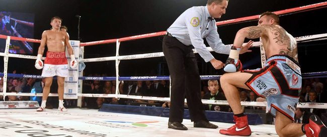 Британца всё чаще можно было обнаружить у канатов. Спиной к ним, само собой. Апперкоты слева, которыми со знанием дела терзал его Головкин, проходили уж слишком просто. Возможно, под конец 8-го раунда, когда Маррей сполз вниз у канатов под бомбёжкой чемпиона, ему и стоило открывать счёт. Третий в ринге решил, что падение произошло просто от усталости и разбалансированности. Невозмутимому и без тени эмоций на лице Геннадию было всё равно.