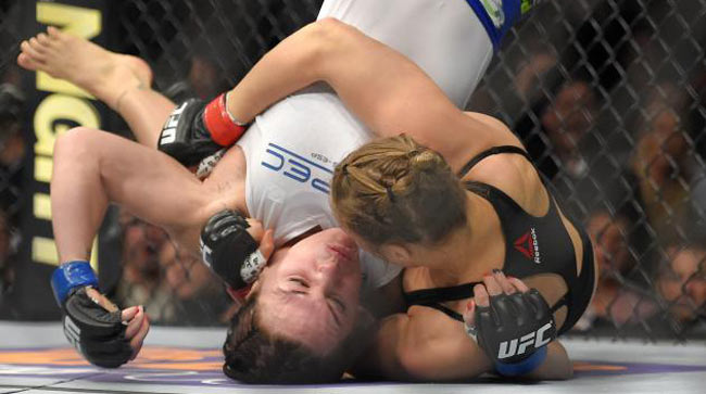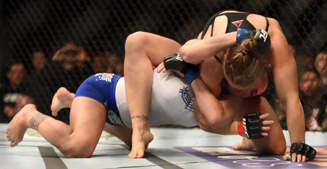 Ронда – неподражаема. Хотим мы того или нет. Защищает чемпионский титул в пятый раз, становится обладательницей $50 000 за «представление вечера», доводит свой рекорд в ММА до 11-0, из них 9 (!!!) побед приёмом «рычаг локтя» (armbar). Только вдумайтесь, насколько чётко наработано данное техническое действие! Спортивное мастерство в чистом виде. Причём, высочайшее. Скоро слово «armbar» будет синонимом слов «досрочное поражение». Никакого преувеличения. Кто попадал в оную «ловушку» – так и не смог из неё выбраться. А кто смог – попал повторно и вынужденно постучал-таки в знак сдачи.
