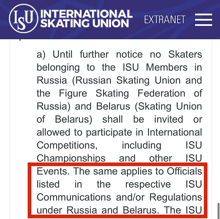 Последнее коммюнике ISU от 24 апреля действительно вводит запрет спортсменам из России и Беларуси участвовать в соревнованиях. Причем запрет, по сути, не имеет срока действия – в документе говорится «until further notice» – то есть «до особого решения». Намек на то, что может повлиять на это решение, есть в конце заявления: «ISU продолжит пристально следить за ситуацией на Украине и за тем, как она скажется на деятельности Союза».