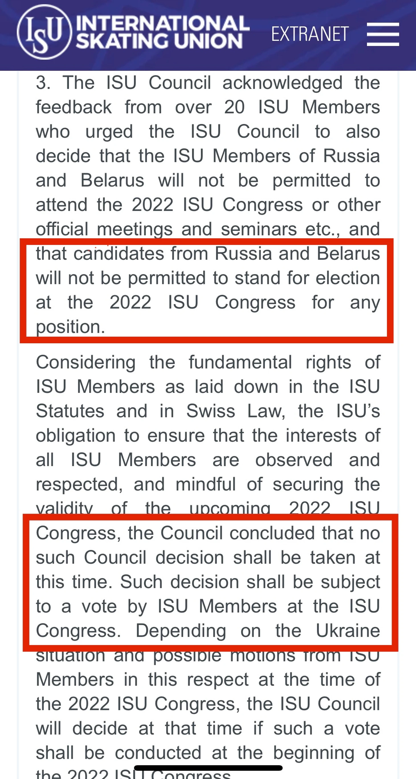 Запрет нашим чиновникам занимать посты в ISU и выставлять кандидатуры на выборы тоже обсуждался. Как сказано в документе, с таким предложением выступило более 20 национальных федераций – более того, они настаивали на том, чтобы вообще не допускать Россию и Беларусь к участию в конгрессе.