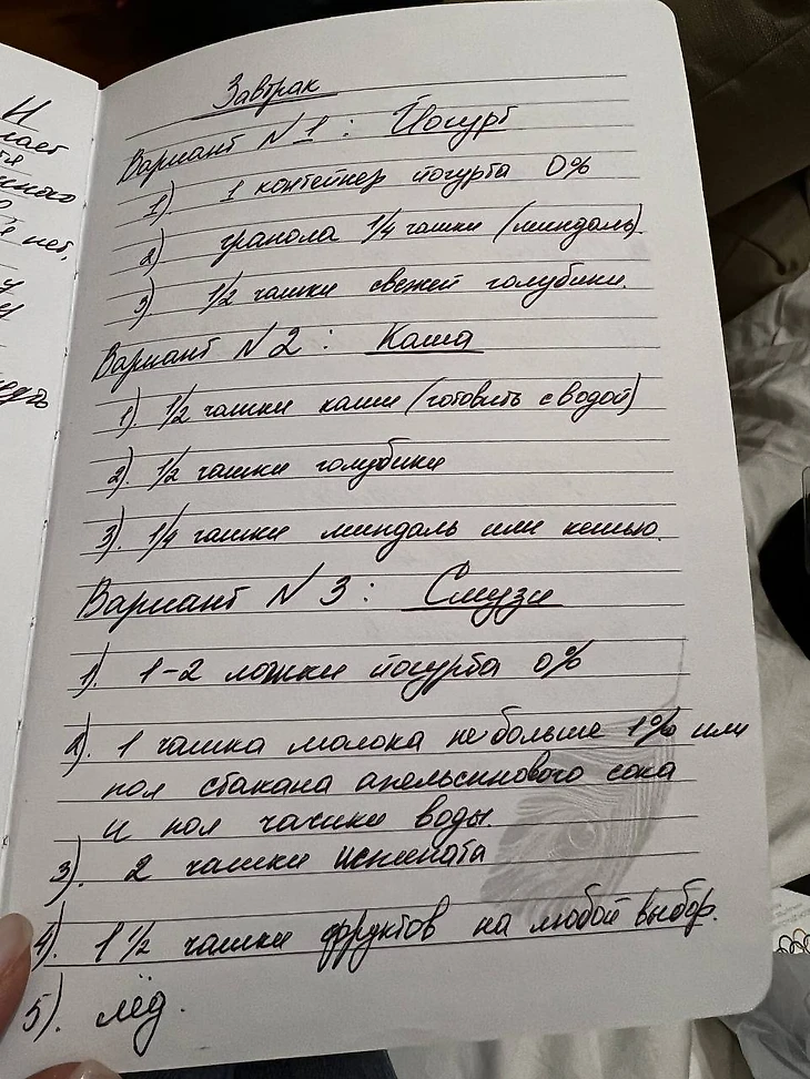 В дневниках Синициной тех лет, правда, никакого шоколада не встретишь. Зато сами записи, выложенные Викой в телеграме, дают редкий шанс подсмотреть, чем же на самом деле питаются спортсменки олимпийского уровня.
