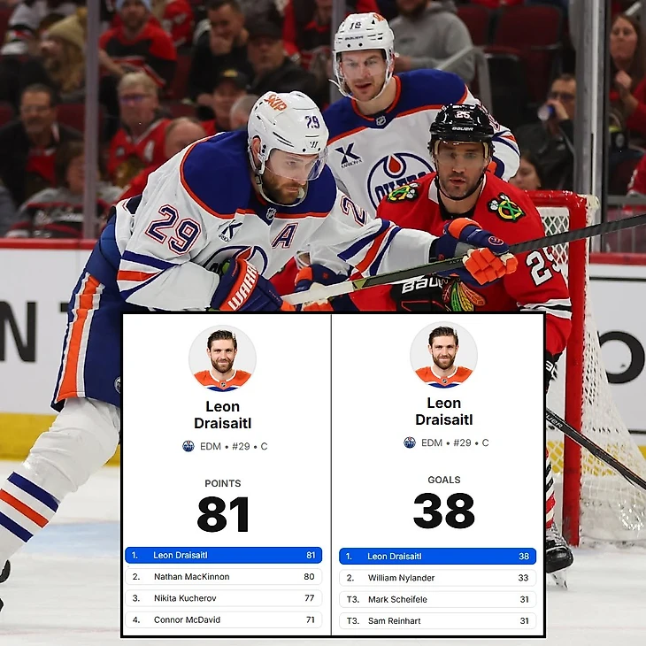 Прошедшей ночью форвард «Ойлерс» набрал два очка в матче против «Чикаго» и в седьмом сезоне подряд преодолел отметку в 80 очков.