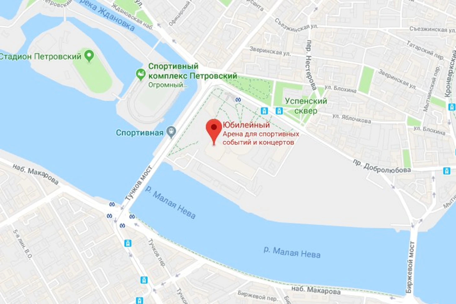 Адрес арены – проспект Добролюбова, 18, г. Санкт-Петербург.