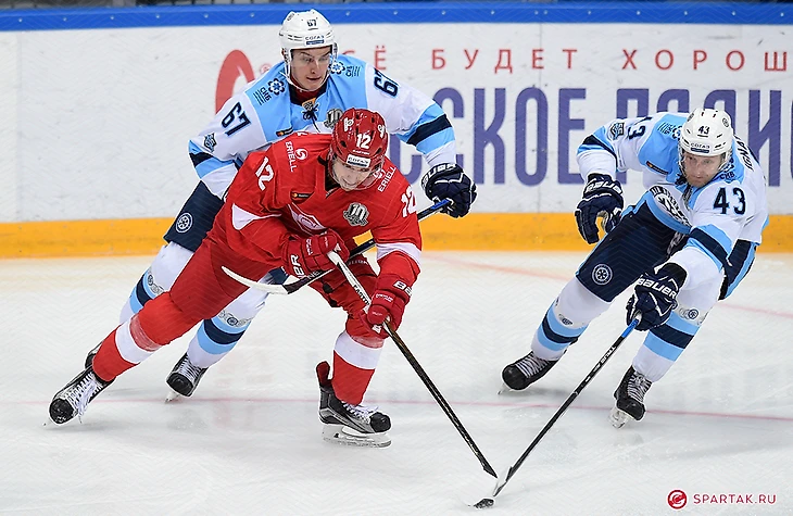 Первый период Сибирь начала очень бодро. Пропущенная на третьей минуте шайба, кажется, только подстегнула гостей. Атаки на ворота Спартака шли одна за другой, было много бросков, хорошо играли в большинстве. Но всё бесполезно – не шла шайба в ворота Беспалова! Вторую двадцатиминутку сибиряки явно намеревались начать так же активно, но два удаления и вторая пропущенная шайба остудили их пыл. При счёте 2:0 новосибирцы, как будто, опустили руки и перестали играть. Третий гол Спартака, по сути, снял все вопросы о результате встречи. В заключительном отрезке матча Сибирь не сумела навязать свою игру хозяевам и устроить навал на их ворота. Наоборот, спартаковцы очень опасно атаковали и вполне могли добавить ещё пару-тройку шайб в свой актив, но мешал каркас ворот и Красиков. Размочить счёт не помог сибирякам даже буллит. А вот когда вратаря сибиряки заменили на шестого полевого, Лещенко отправил шайбу в пустые ворота. Итог матча – 4:0 в пользу Спартака.