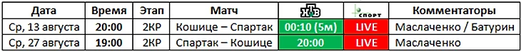 Перехожу к традиционным таблицам. Время начала матчей и эфиров московское.