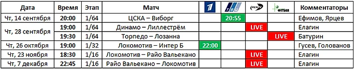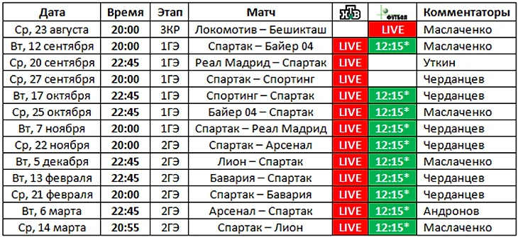 Переходим к таблицам. Время начала матчей и эфиров московское.