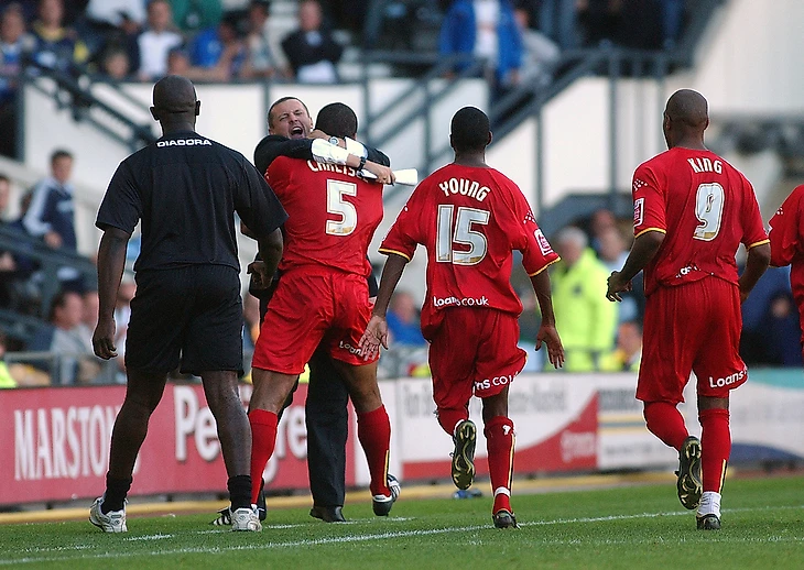 «Это действительно счастливый Левингтон в день, когда игроки победили во встрече против Шеффилд Юнайтед. Этой фотографией можно подвести итог периода, когда обанкротилась ITV Digital».