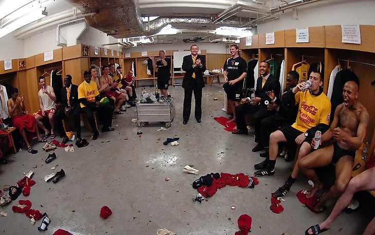 «Раздевалка Милениум Стэдиум после финала плей-офф. Не все раздевалки в то время были такими классными, так что было здорово оказаться там и сделать этот кадр сразу после игры».
