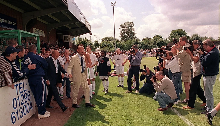 «Торжественная встреча перед товарищеской предсезонной игрой. Виали весь в белом, что было традиционным для тренеров Уотфорда в то время. Странный был день. На фото можно заметить и ныне покойного Рэя Уилкинса».