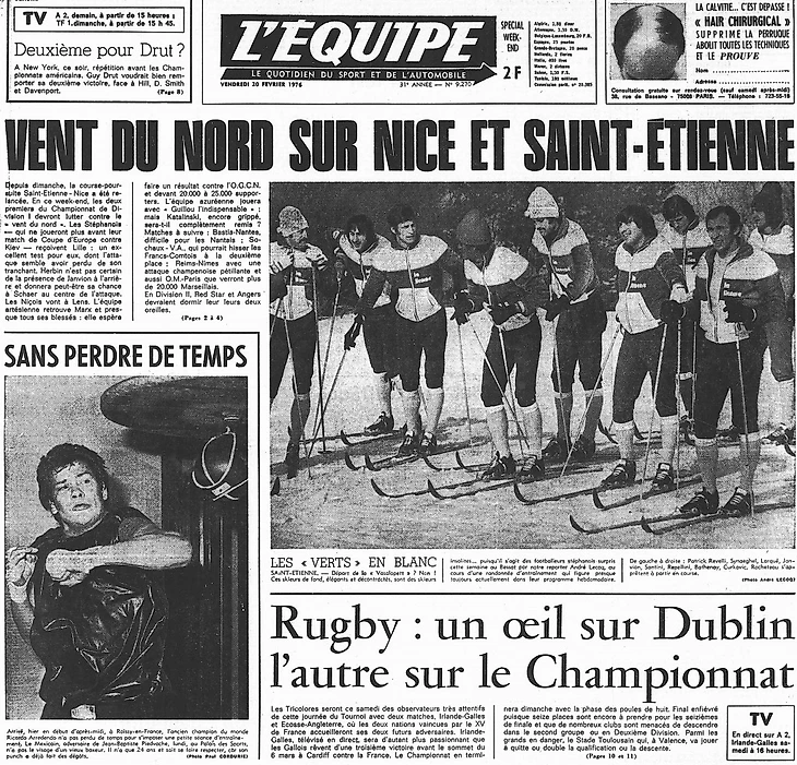 Так на лыжах игроки Сент-Этьенна готовились к матчу против Лилля :-) (L’Equipe, 20 февраля 1976)