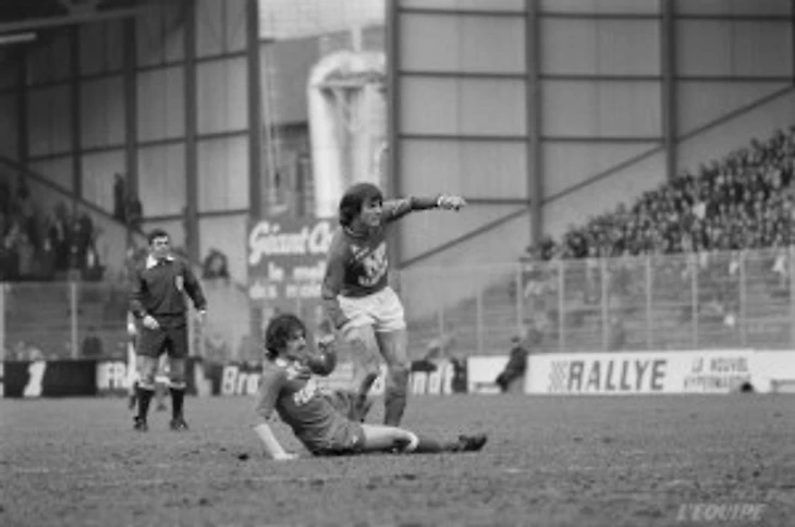 22-е февраля. Сент-Этьенн-Лилль (3-1). Доменик Батеней пытается ускользнуть от подката Бернара Гардона. При опеке сумасшедшего Караси, он часто брал верх над нападающим «Лилля».