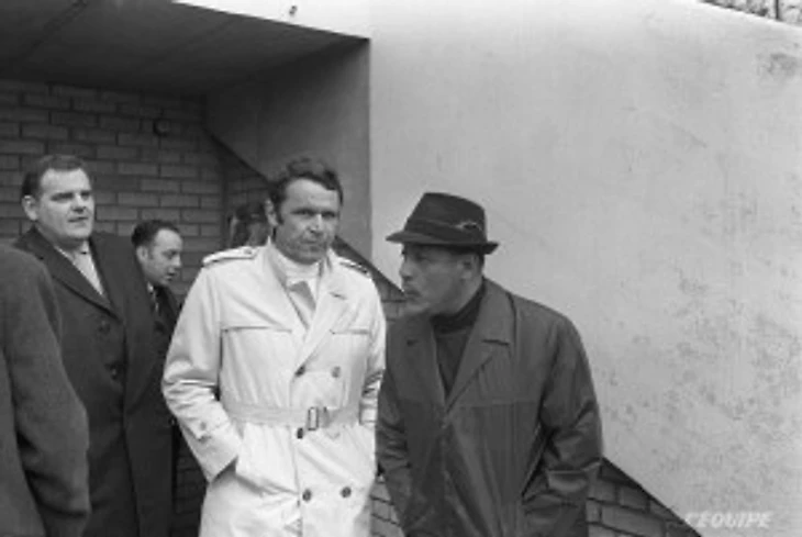 Пьер Гаронэр (в белом плаще) вернулся в Сент-Этьенн с полной записной книжкой, посвященной вояжу в СССР.