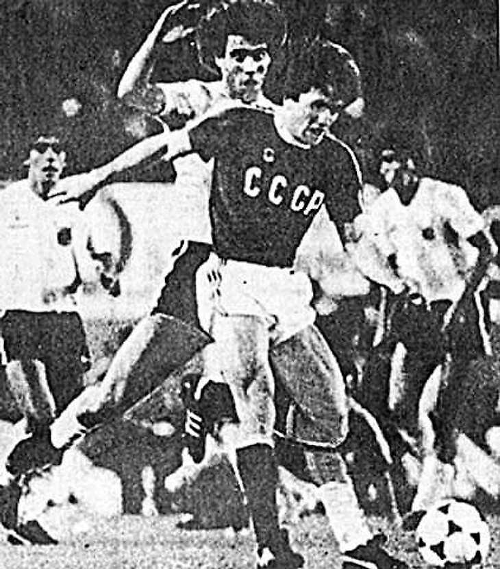 СССР-Турция (4-0). Олег Блохин проводит третий мяч