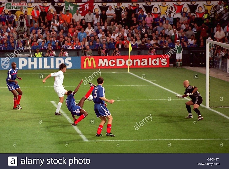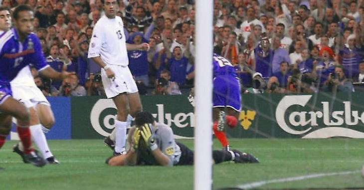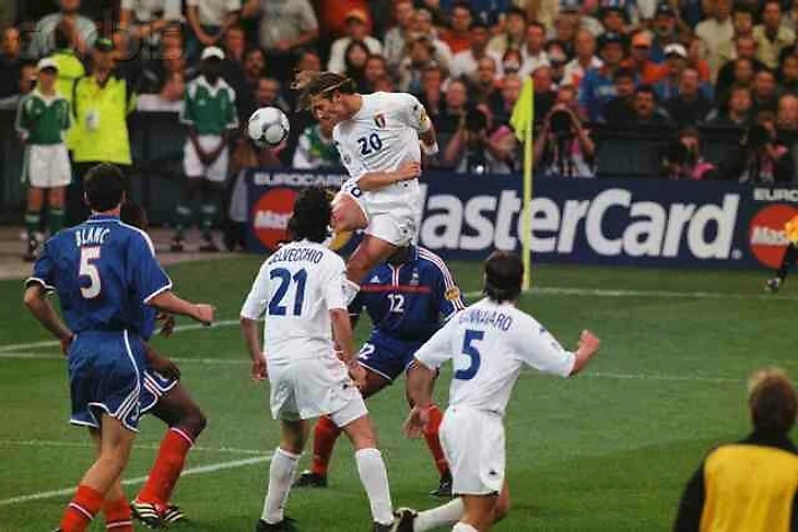 На самом деле, 21 год назад, когда я смотрел матч вживую, восприятие реальности было намного драматичнее. Трудно представить психологическое состояние французов, когда минуты до предполагаемого финального свистка буквально бежали, а многочисленные разнообразные усилия в атаке не приносили результата. Голландцы свой полуфинал фактически проиграли еще в основное время, психологически надломившись. Трехцветные также в финале ходили буквально по канату. Более того, на 84-й мин. итальянцам едва не удалось решить исход матча. В единственной доведенной до ума за последние 25 минут контратаке Амброзини выводит Дель Пьеро к воротам. Великолепный шанс похоронить трехцветных, но Бартез блистательно парирует мяч ногой и cпасает Францию!!!