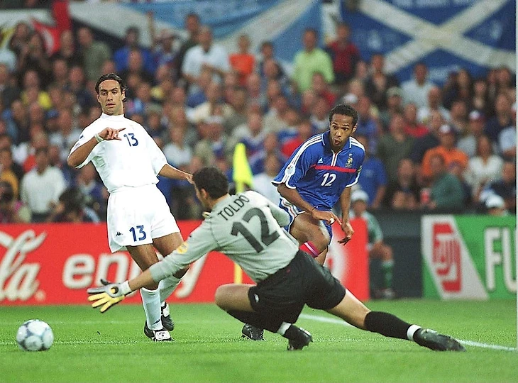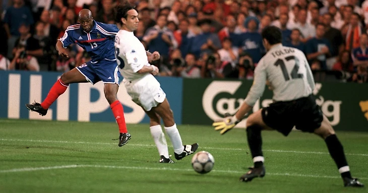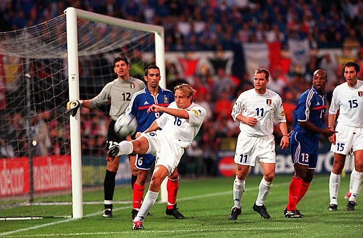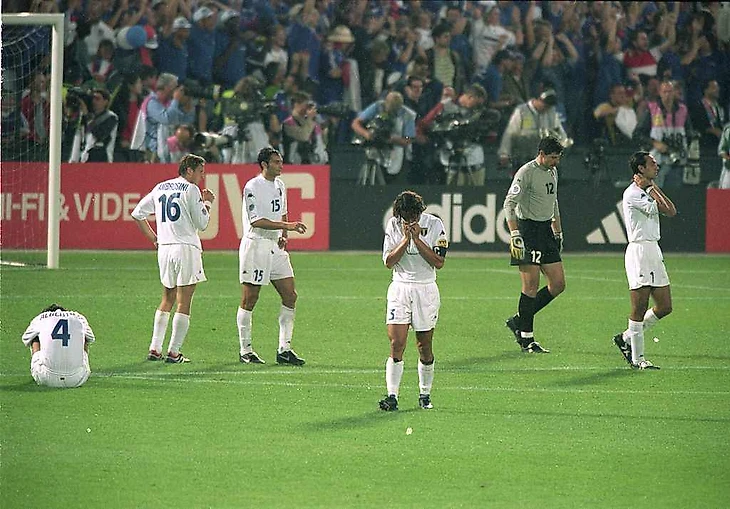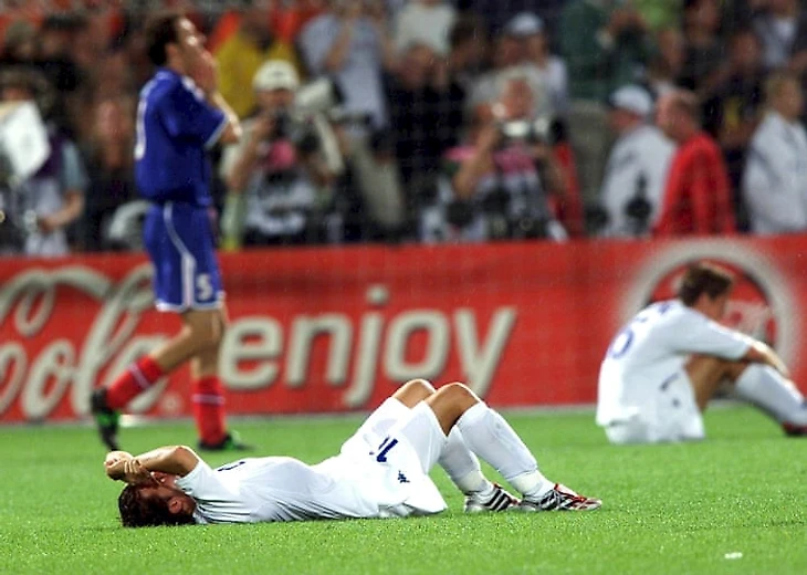 Конечно же столь обидно упущенная победа не могла не нанести страшный психологический удар. Как скажет после матча Дельвеккьо, «в душе мы уже готовились к празднику». В дополнительное время итальянцы еще шли вперед и однажды Бартезу даже пришлось ускориться на выходе из ворот, чтобы оставить Дель Пьеро без мяча. Но скорее это были просто усилия для того, чтобы хотя бы не лишиться последней надежды- лотереи в виде послематчевых пенальти, в надежде на повторение подвигов голкипера. На 95-й минуте Тольдо отражает опасный удар Пиреса, но как то неуверенно и Трезеге бросается на добивание. В последний момент он перепрыгивает через кипера, но при этом задевает его.