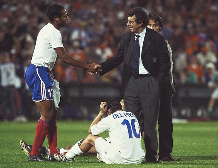Тем временем, итальянские поклонники буквально ревели в предвкушении победного свистка. Дзофф, обычно хладнокровный, несколько раз пытается пересечь боковую, а все итальянские запасные встали на ноги, готовые броситься на поле для плясок над телами поверженных чемпионов мира. Счет пошел уже на секунды и в Париже перед гигантским экраном, по которому шла прямая трансляция из Роттердама, установилась гробовая тишина. Казалось, что трехцветных уже ничто не спасет. Несколько человек в те мгновения упали в обморок и были увезены в больницы. Сам я не помню, что думал в те секунды, но жена потом говорила, что на мне не было лица и я тоже не мог произнести ни слова. Однако, как скажет один из французских тренеров, Рене Жирар: «Команда верила в удачу до конца. У нее удивительная стойкость, редкостное умение не сдаваться ни при каких обстоятельствах».