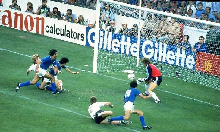 И тренер решил выпустить Руменниге в следующей игре с самого начала, однако о мадридском финале мы будем говорить лишь для справки, поскольку перформанс Руменниге (замененного Ханси Мюллером на 70-й минуте) было там весьма бледным. Более того, при счете 0-0, когда еще не было признаков будущего преимущества апеннинцев, капитан команды в нерасполагавшей к тому игровой ситуации сбивает итальянского игрока. Команда Беарзота прекрасно использовала назначенный штрафной и Росси открывает счет, словно раскрепостив итальянцев, вспомнивших свой перформанс против Бразилии.
