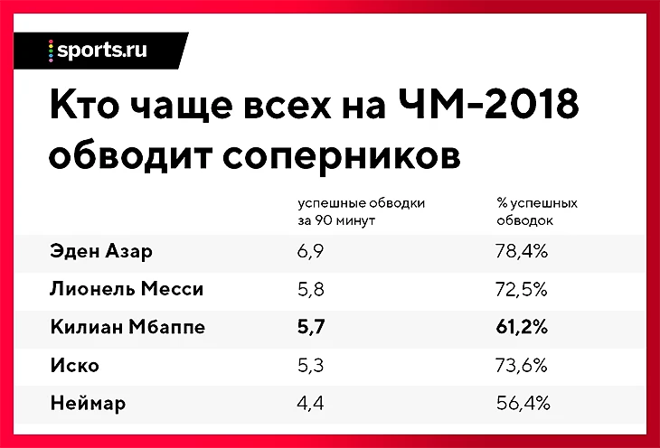 Мбаппе очень опасен для соперника даже в матчах, когда сам не угрожает воротам (например, в игре с Бельгией Килиан не нанес ни одного удара). Его обводки и быстрые отрывы – одно из самых сильных впечатлений турнира.