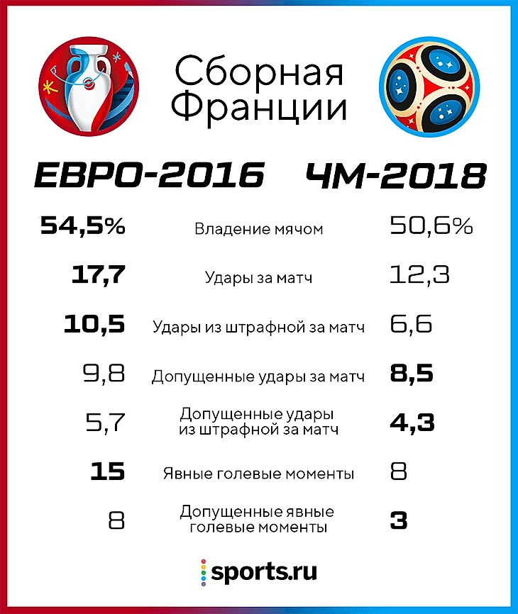 Не такие яркие решения (Матюиди слева, Павар и Эрнандес вместо Сидибе и Менди) сделали французов самой сбалансированной сборной турнира. «Нужно быть прагматичным и нужно быть реалистом», – сказал Дешам после победы над Бельгией.