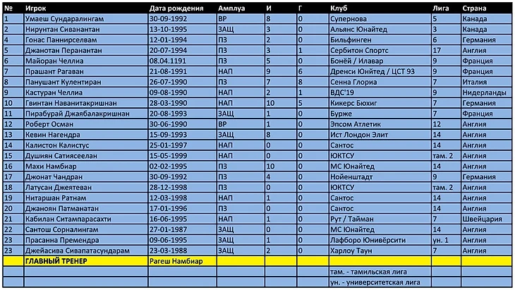 На первый взгляд, тренеру сборной Тамил-Илама есть из кого выбирать - тамильская диаспора достаточно велика, 77 миллионов человек и многие играют в футбол. Однако шри-ланкийских тамилов, которые имеют определённые отличия, не так уж и много – 3 миллиона.  За рубежом достаточно активны канадская и британская их часть, где существует целый ряд организаций, координирующих спортивную жизнь народа, а также свои собственные футбольные лиги.