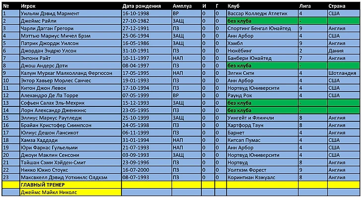 Единственный профессионал в рядах команды – представитель ирландского клуба "Слайго Роверс", защитник Шеймус Шарки.