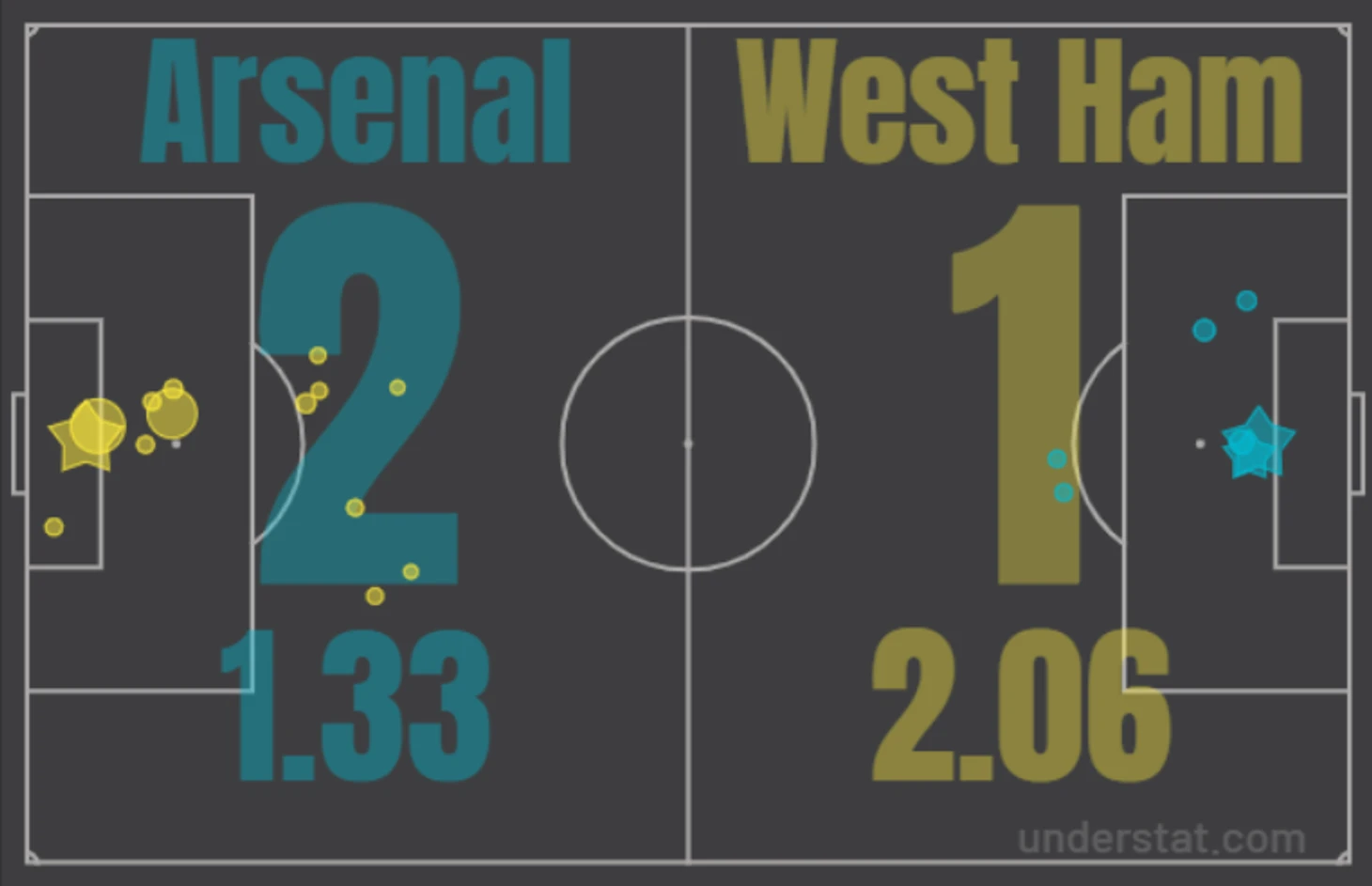 В матчах, когда соперники отдают мяч «Арсеналу», канонирам сложно создать остроту в атаке. Так было в матче против «Вест-Хэма» на Эмирейтс в рамках второго тура АПЛ. «Арсенал» владел мячом 65% времени, но нанес всего 7 ударов (3 в створ) в сторону ворот молотобойцев. «Вест-Хэм» ударил в ворота Бернда Лено 13 раз (3 в створ). По данным с сайта "Understat.com", «Вест Хэм по "xG" превзошел «Арсенал», но несмотря на это, канониры все-таки смогли победить со счетом 2-1.
