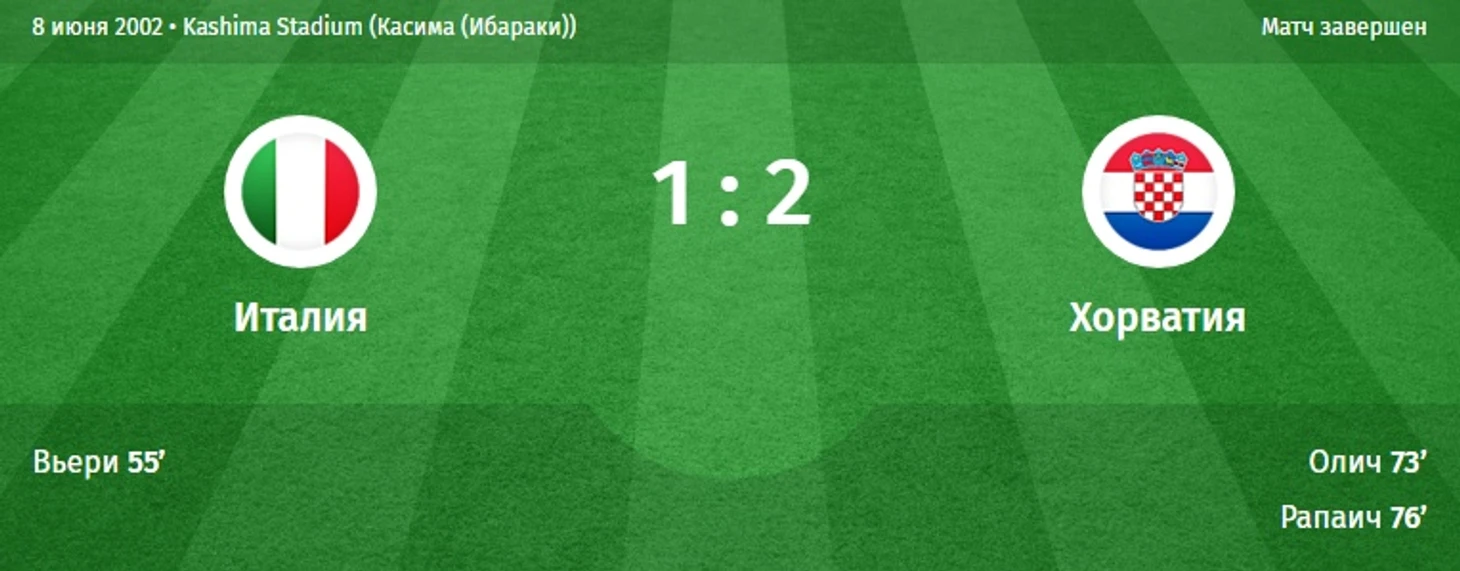 На Мундиале в Японии и Корее сборная Хорватии не вышла из группы, но сумела переиграть вице-чемпионов Европы - итальянцев.