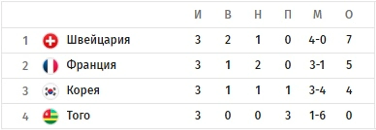 Швейцария на том турнире не пропустила в свои ворота ни одного мяча и не потерпела ни одного поражения. В 1/8 финала они сыграли со сборной Украины 0:0 в основное время и покинули ЧМ только по результатам серии пенальти.