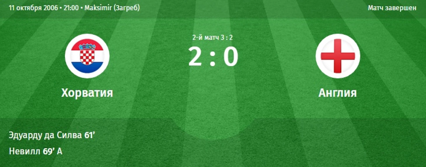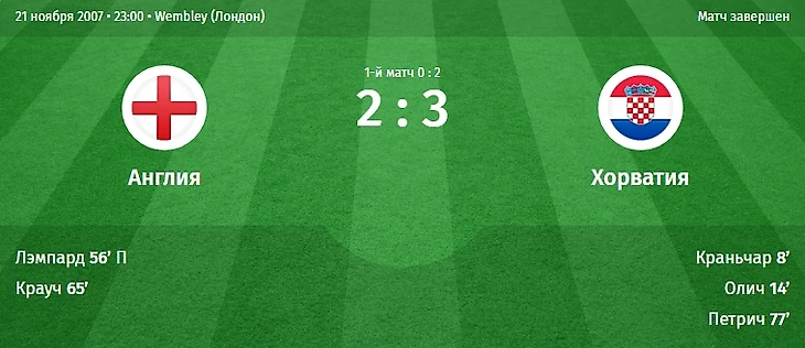 Но особенно важной была их гостевая победа, благодаря которой сборная России смогла попасть на Евро-2008. Перед последним туром хорваты уже досрочно вышли из группы и приехали на "Уэмбли" абсолютно немотивированными.