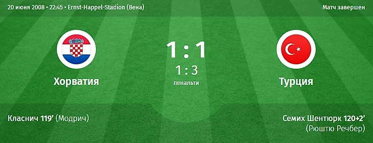 Казалось, что сейчас разыграют мяч с центра поля и прозвучит финальный свисток об окончании матча. Но главный судья дал туркам время на одну атаку. И они совершили невозможное, сравняв счет в том поединке. В серии послематчевых пенальти Турция оказалась точнее и прошла дальше.
