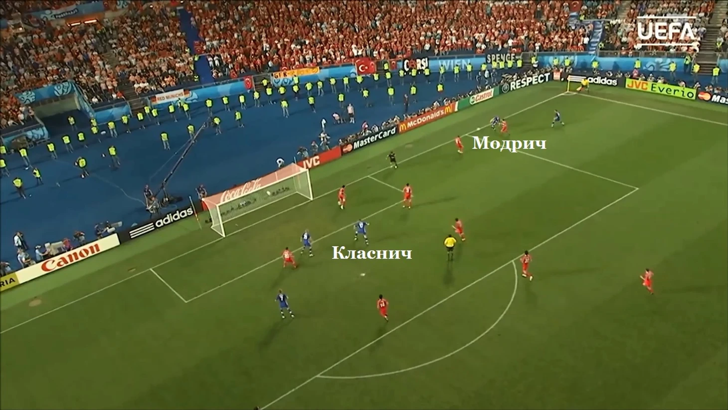 Поединок против Турции войдет в историю футбола как один из самых драматичных матчей с самой невероятной развязкой. Основное время закончилось нулевой ничьей. А за 1 минуту до конца дополнительного Лука Модрич сотворил маленький шедевр. Лидер хорватов перехитрил вратаря и вырезал шикарную голевую передачу от лицевой линии поля прямо под удар Ивану Класничу.